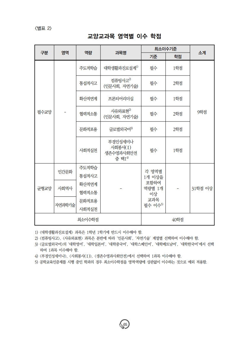 [22학번부터 필수교양 이수] 교양교과목 영역별 이수 학점